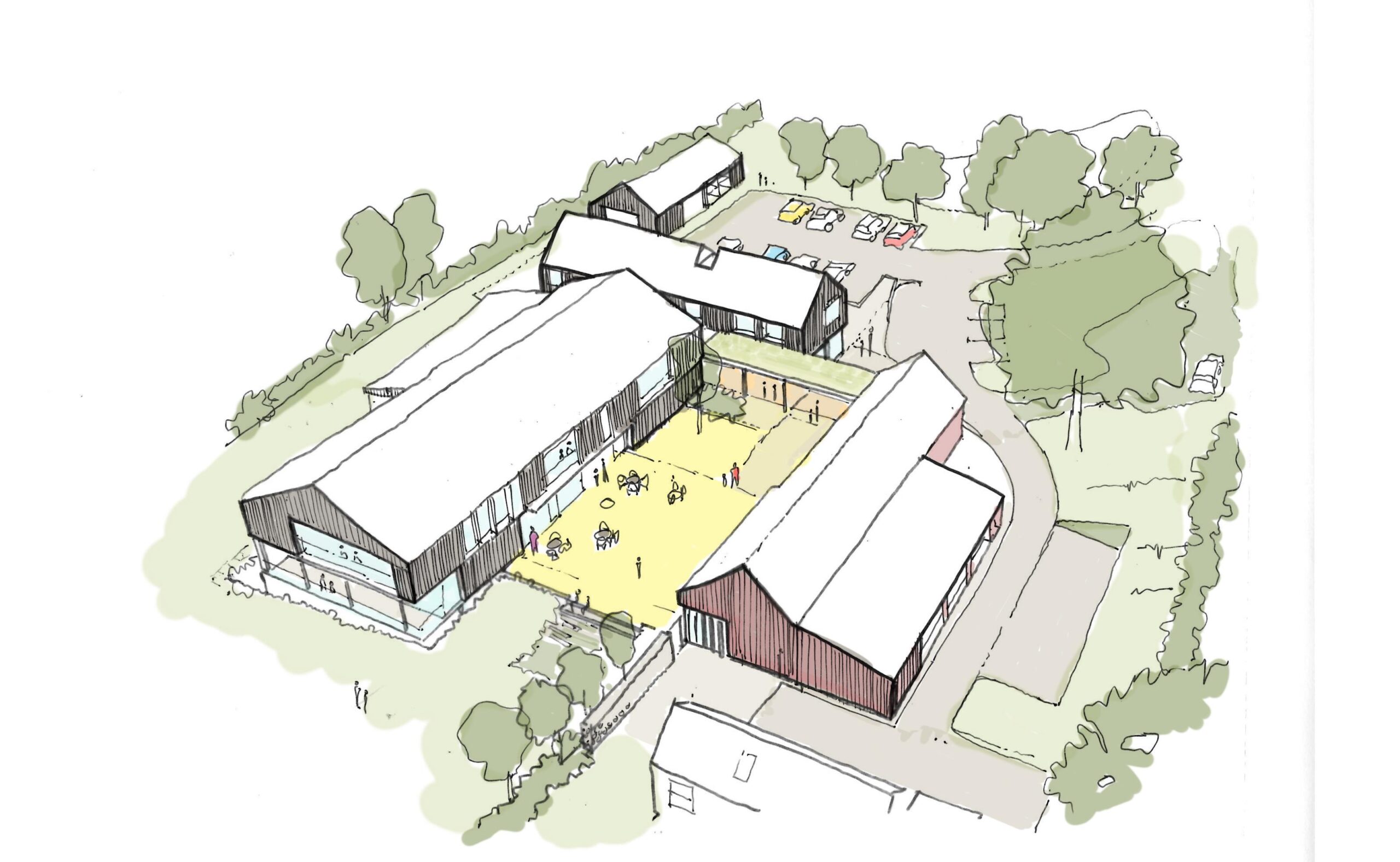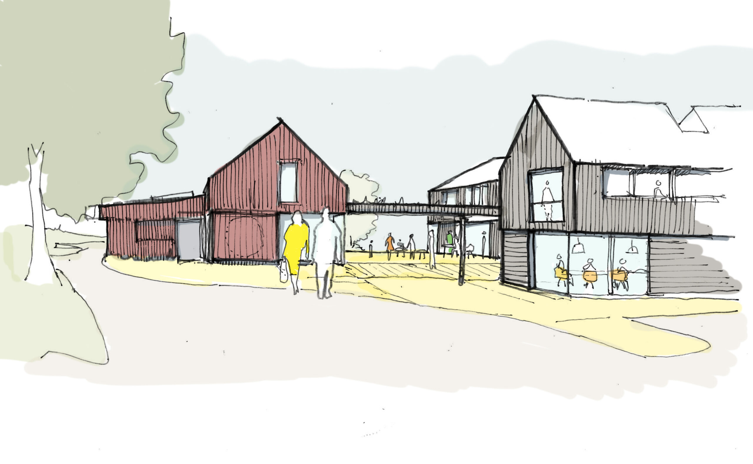 The designs utilised the sloping site, with sub below ground floor levels, and a central landscaped courtyard, linking retail space, office space, changing and training areas, with a large scale restaurant and catering area. The buildings allowed for far reaching views over the rural landscape. At the time of approval the scheme was the largest of its kind within the green belt.