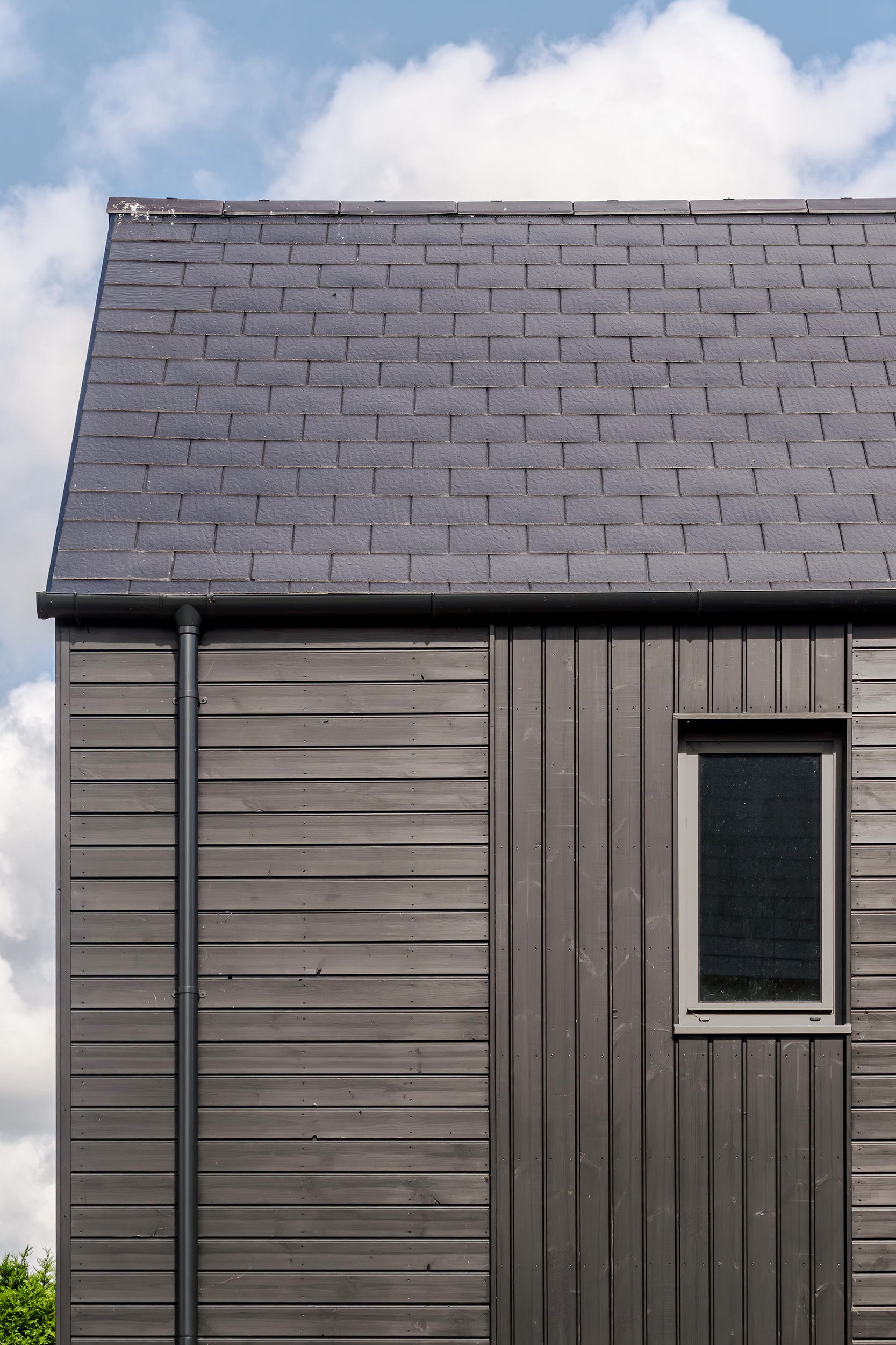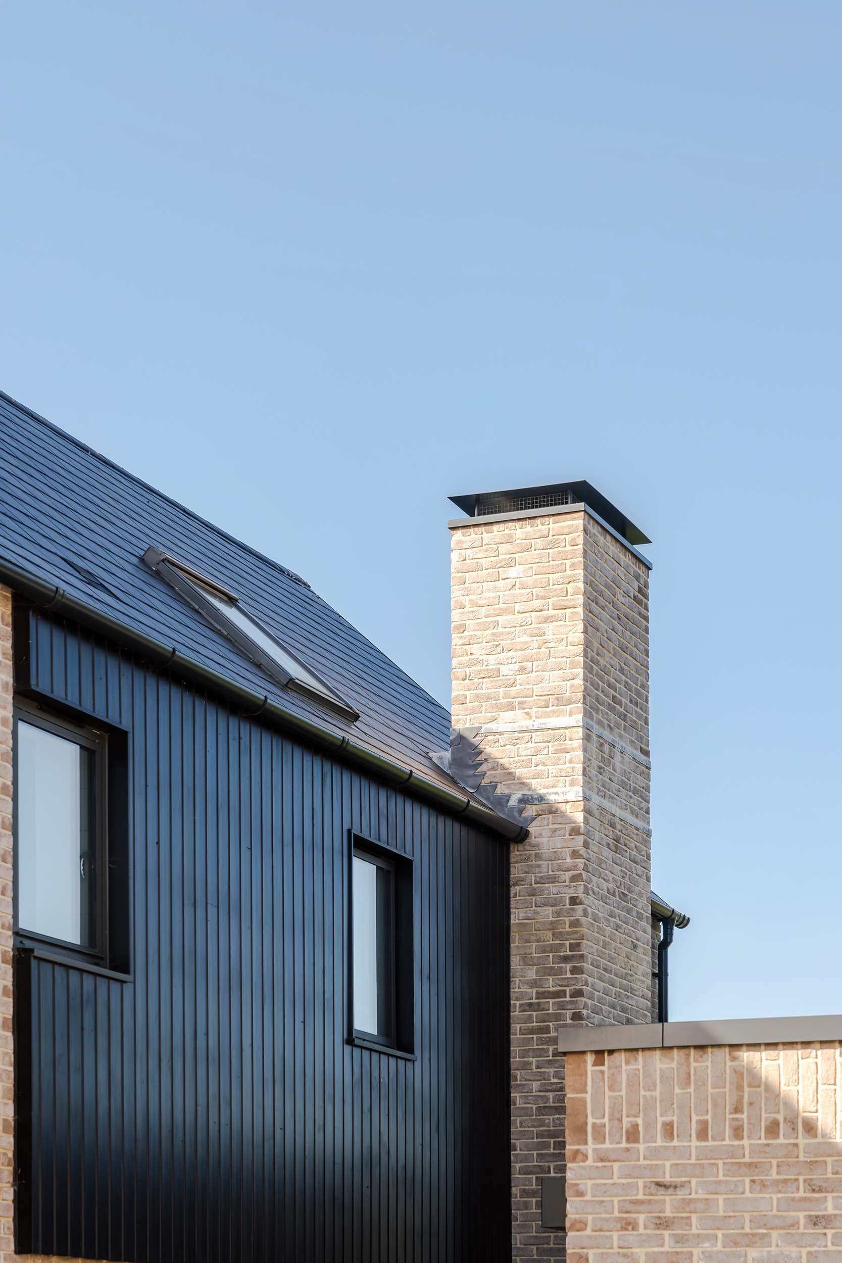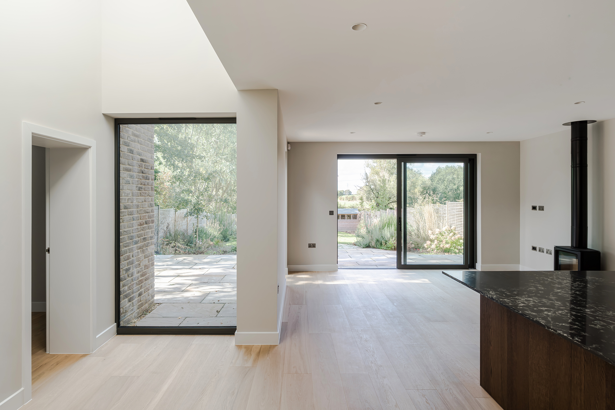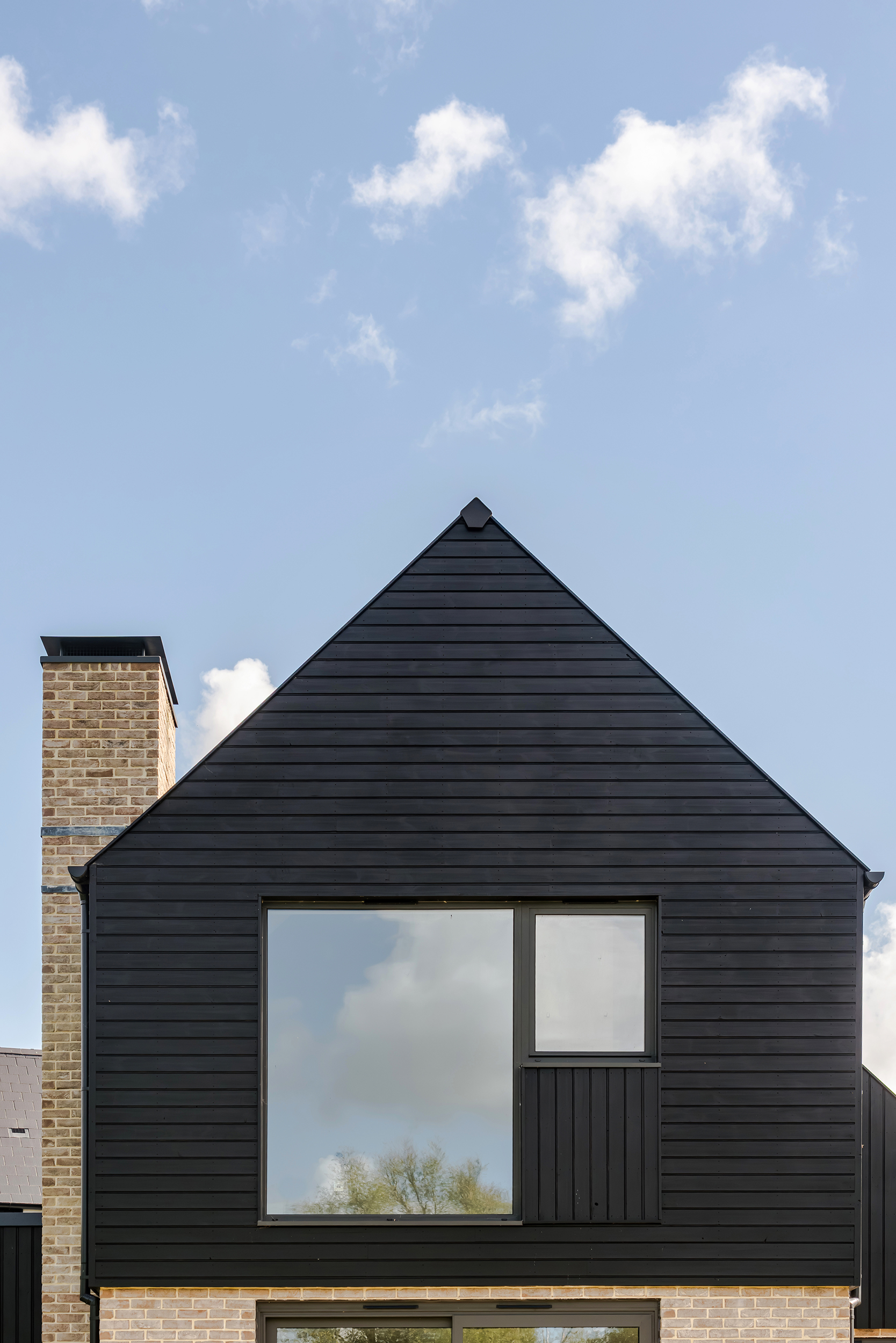 The houses combine a mix of materials, natural render, buff bricks, black stained timber cladding, slate and zinc, to add interest across the development and to blend the differing property types as you move through the site. The ground floors are mostly open plan, with large sliding doors to the rear overlooking generous private garden spaces.