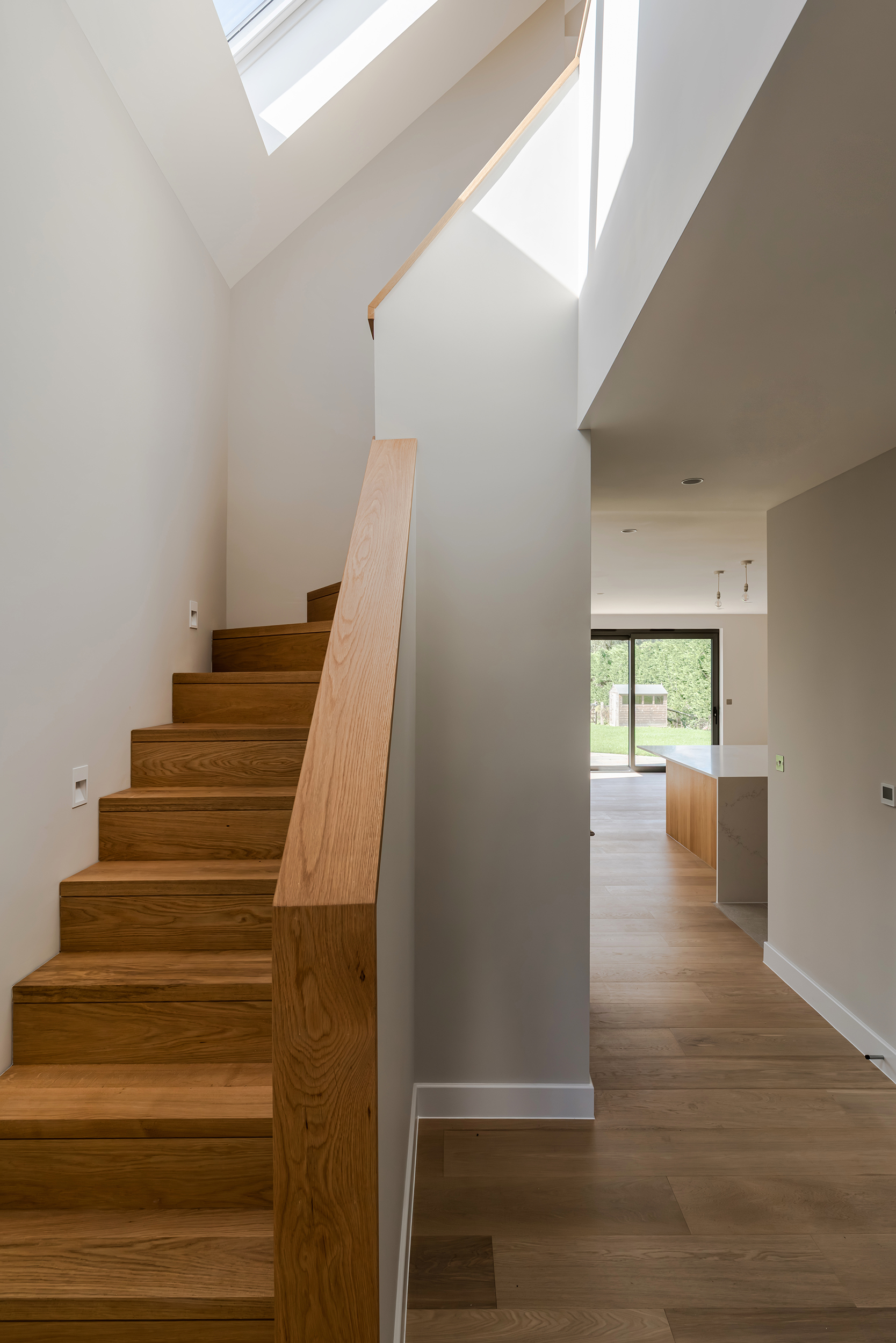 The pitched roofs are expressed internally, providing large double height space over stair wells, in some of the dining spaces and over bedroom areas.
